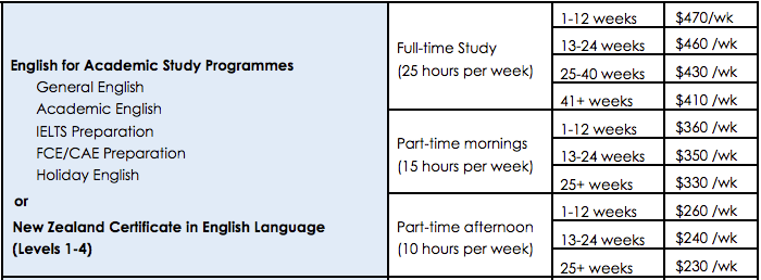 - NZCEL:このプログラムはレベルが6つあり、学生の能力とレベルに合ったクラスに入ります。各レベルは20週間の勉強となります。学生の参加するレベルは校内テストで確認する為、IELTSやFCEなどの試験を事前に受ける必要はありません。入学には、英語の必要条件があります。レベル3アカデミックはIELTS5.5、CEFR B1、FCE C 、もしくはCAE (47) と同じレベルです。レベル4はIELTS6.0、CEFR B2、FCE B or CAE (52)と同じレベルです。