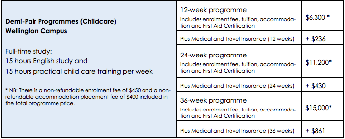 現地の家庭に住みながら、午前中は学校で英語レッスンを行い、午後は子供の世話や家事などをお手伝いしチャイルドケアスキルを勉強します。子供が好きな方、看護師の資格や幼稚園教諭免許をお持ちの方などにお勧めのコースです。ETCのデミペアは12週間、24週間, 36週間のコースから選択できます。また、ワーキングホリデービザだけではなく、NZQA認可のフルタイムプログラムなので学生ビザも取得できるという他校にはないプログラムです。