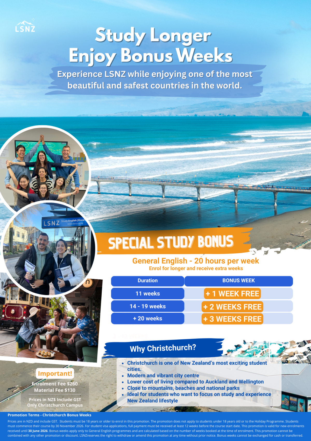 南島で一番大きな都市のクライストチャーチのCity中心部にある学校です。当校はクイーンズタウンにも姉妹校があり、条件が合えば相互に学校間の移動が可能です。アットホームな雰囲気の中、経験豊富でフレンドリーな講師陣が、英語力の中でも特にスピーキングに重点を置いた、生きた英会話のレッスンを提供しています 。